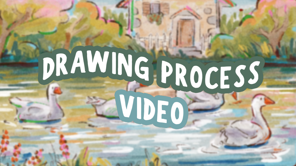 This is a screen recording with voiceover and tips on drawing geese and a lake scene. Watch my full painting process, and you can also see what colors and which brushes I am using.