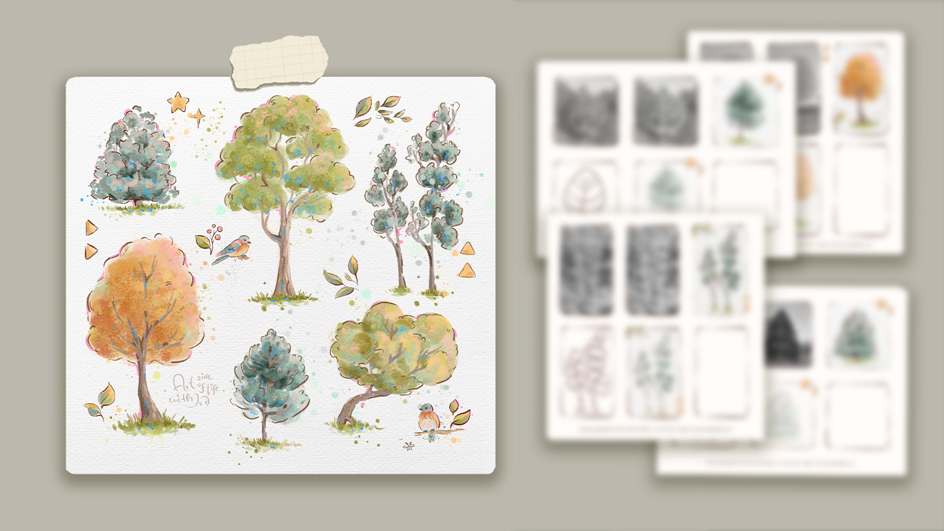 Import these practice sheets into Procreate to improve your tree-drawing skills