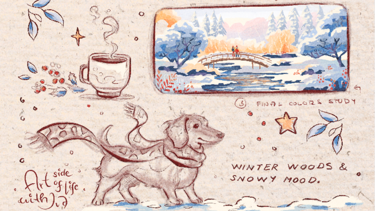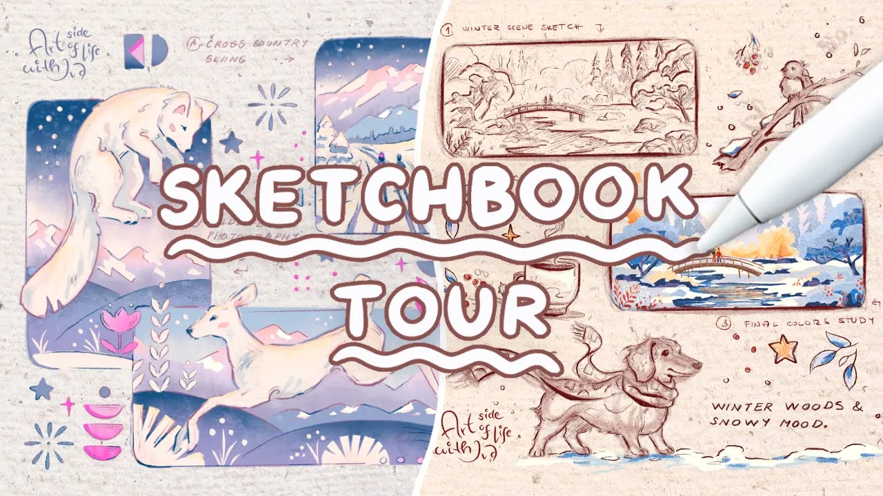 In this cozy winter-inspired sketchbook tour I share a collection of holiday and winter-themed sketches, illustrations, and creative ideas to inspire your seasonal artwork!