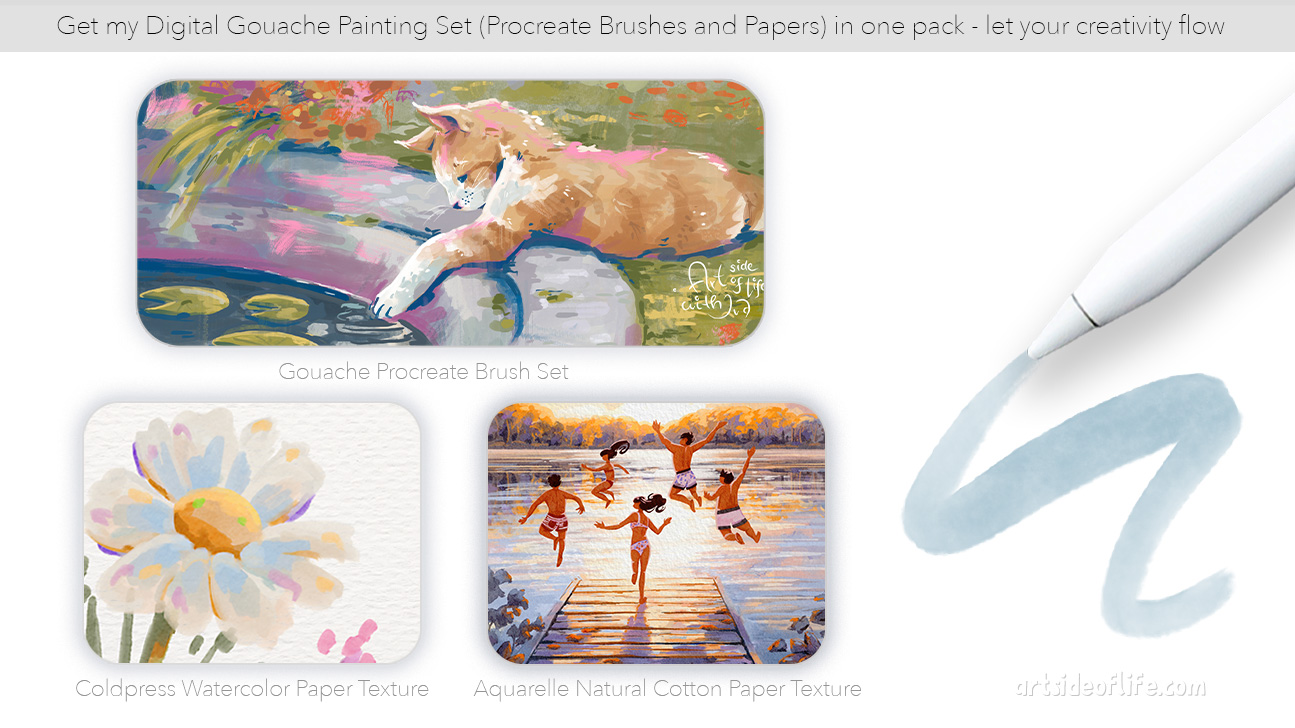 Digital Gouache Painting Set #2 (Procreate Brushes and Papers)